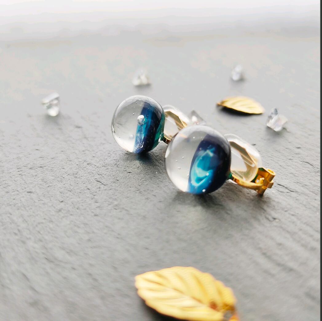 森の中の澄んだ空気を思わせる透明感が、耳元に穏やかな余白をもたらし、気持ちまで静かに整えてくれる球体イヤリングです。