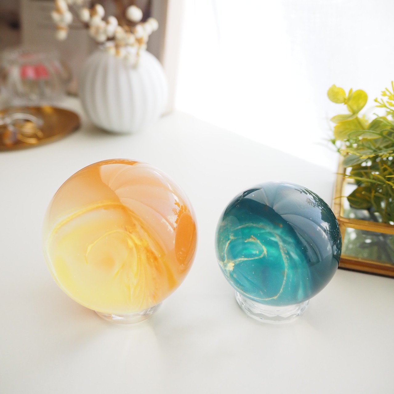 こひまりの作品は色を調合した数色のレジン液をモールド(型)に流し、深みや奥行を感じる魅力的な色を作品にしています。